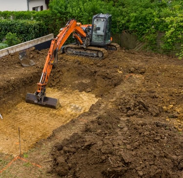 Travaux extérieurs, terrassement et démolition professionnels.